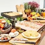 A hotelben terjedelmes büfé reggelit szolgálnak fel. Az ingatlan étterme, a LA Ribiera Catalaanse ételeket szolgál fel.